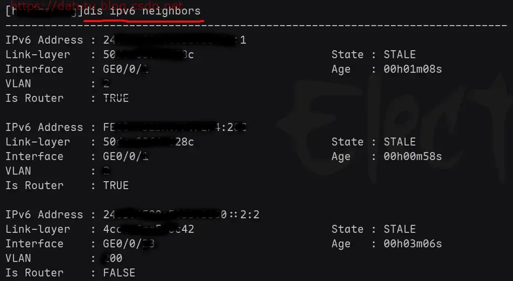 华为交换机IPv4地址与MAC地址采用静态ARP绑定,IPv6地址与MAC地址采用静态邻居绑定