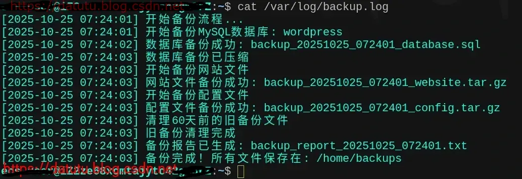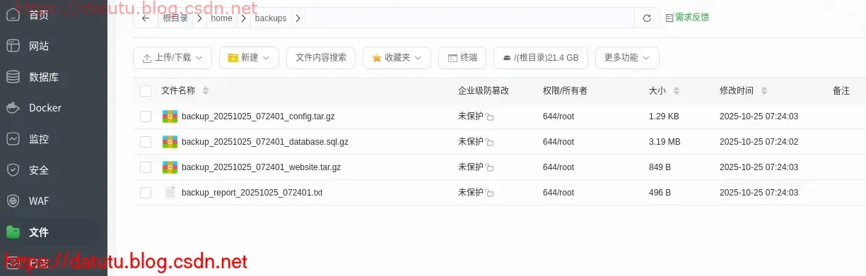 - 网站文件备份:备份网站目录为tar.gz压缩包