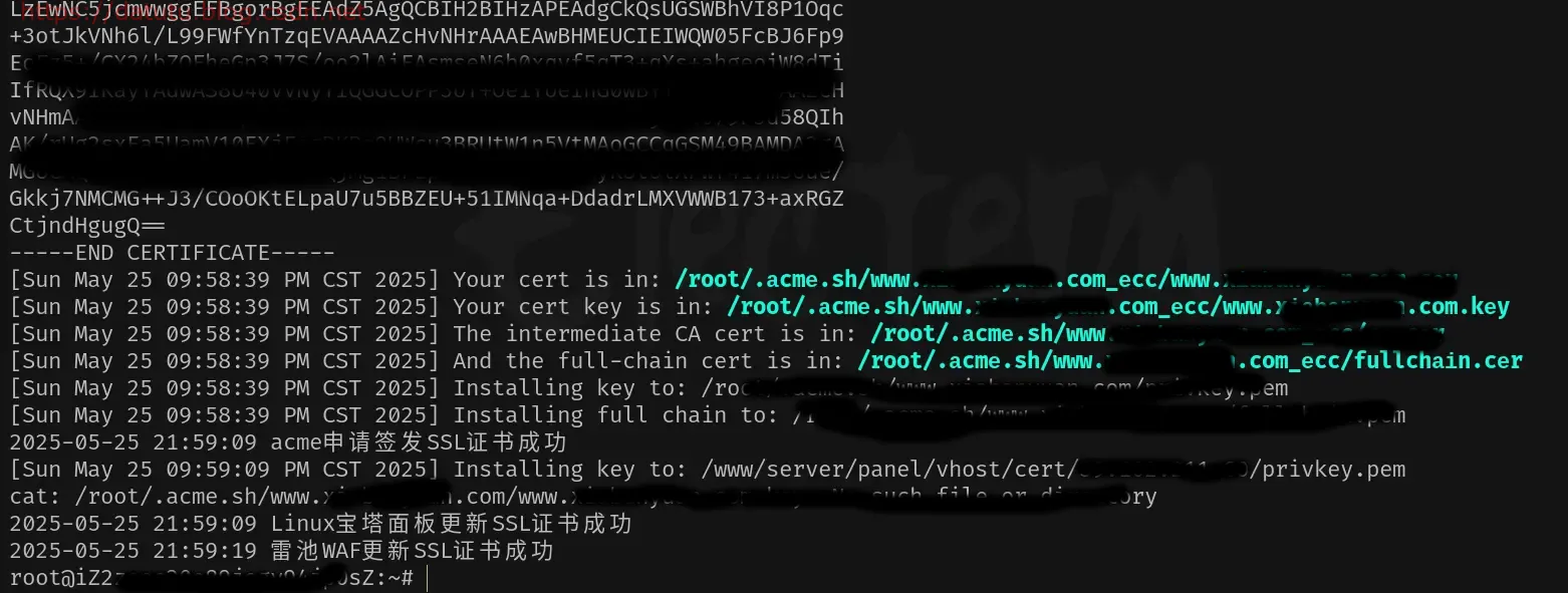 四、阿里云云服务器采用crontab定时任务使acme.sh全自动化申请续签免费SSL证书,并部署在Linux宝塔网站和雷池WAF。